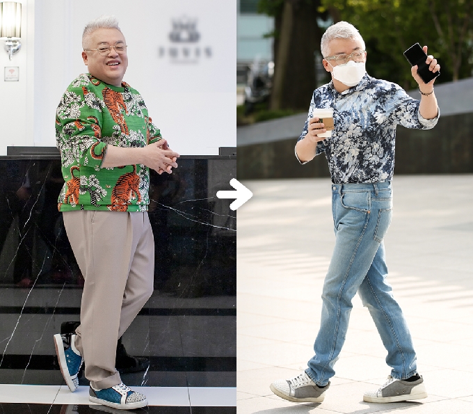 12일 한 다이어트전문업체는 김형석의 근황 사진을 공개했다. 청바지에 화려한 셔츠를 입은 작곡가 김형석은 56세의 나이라고 믿기 어려울 정도의 스타일리시한 차림으로 다이어트 전과는 확 바뀐 스타일을 뽐내며 세월을 역행하는 비주얼을 보여주고 있다.