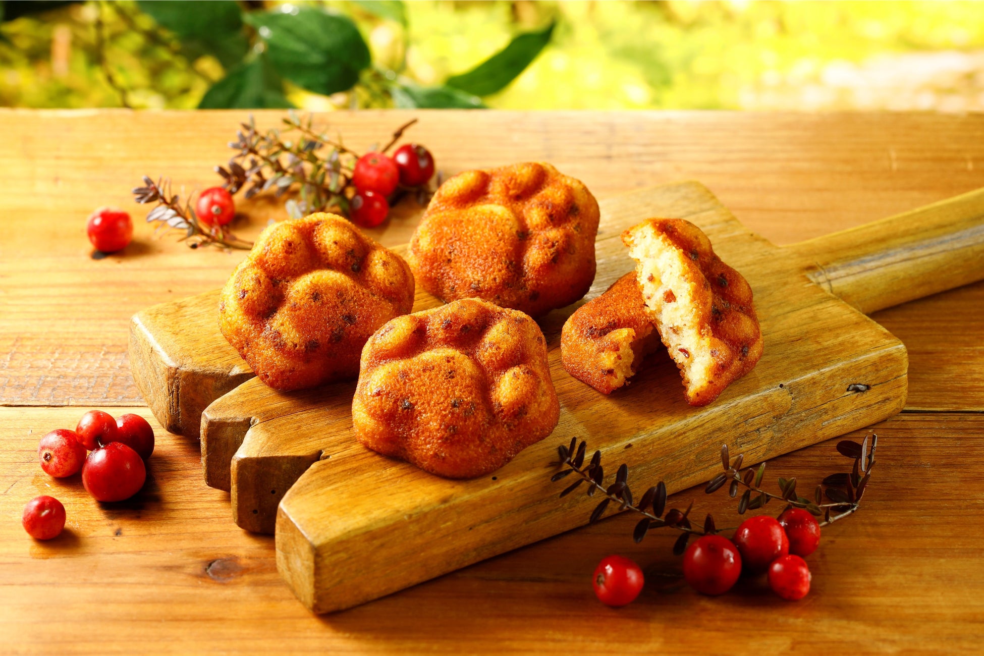 カマンベールを混ぜ込んだフィナンシェに、糖漬けクランベリーを加えて焼き上げました。クランベリーの甘酸っぱさと芳醇なカマンベールの風味をお楽しみ頂ける、しっとりやわらかい食感でさっぱりした甘さのスィーツです。