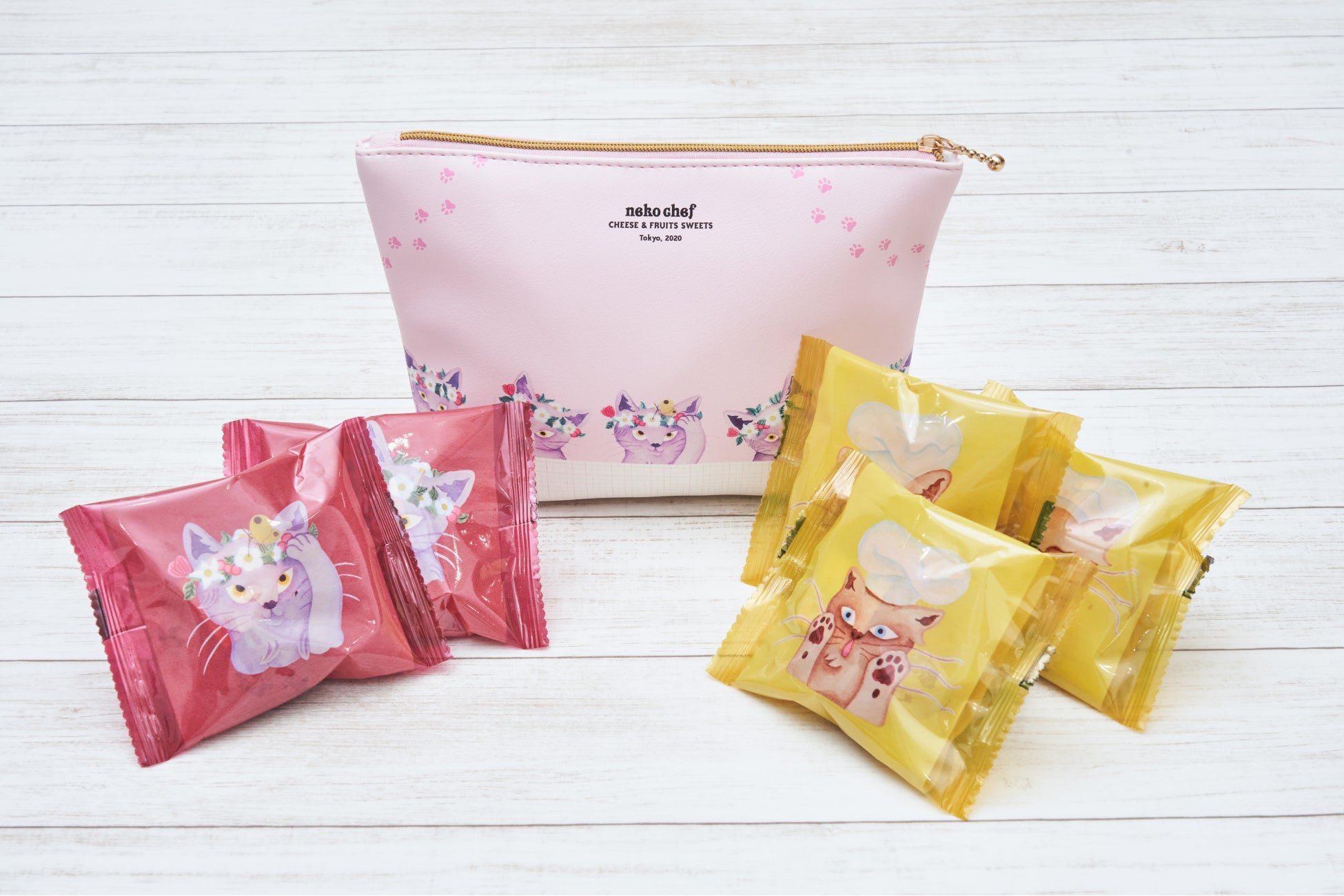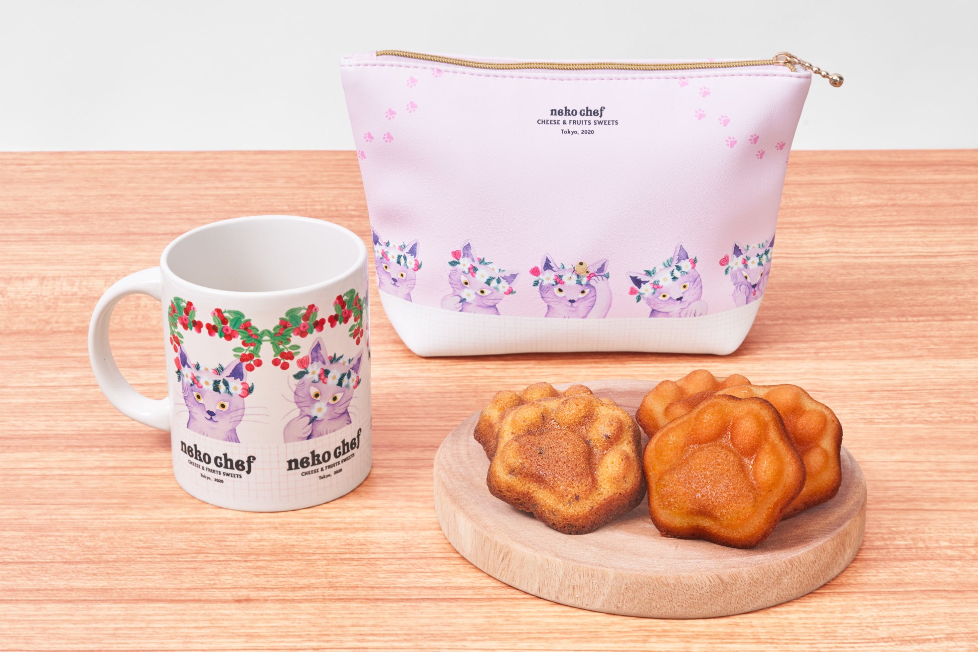 デザインはポーチ・マグカップともに、「ネコシェフ」が片想い中の「ソフィ」の柄でご用意致しました!スイーツ好きの方にはもちろん、ネコ好きの方にはたまらないイベントです!可愛らしいネコシェフの世界観とともに、絶品のスイーツをお楽しみ下さい!