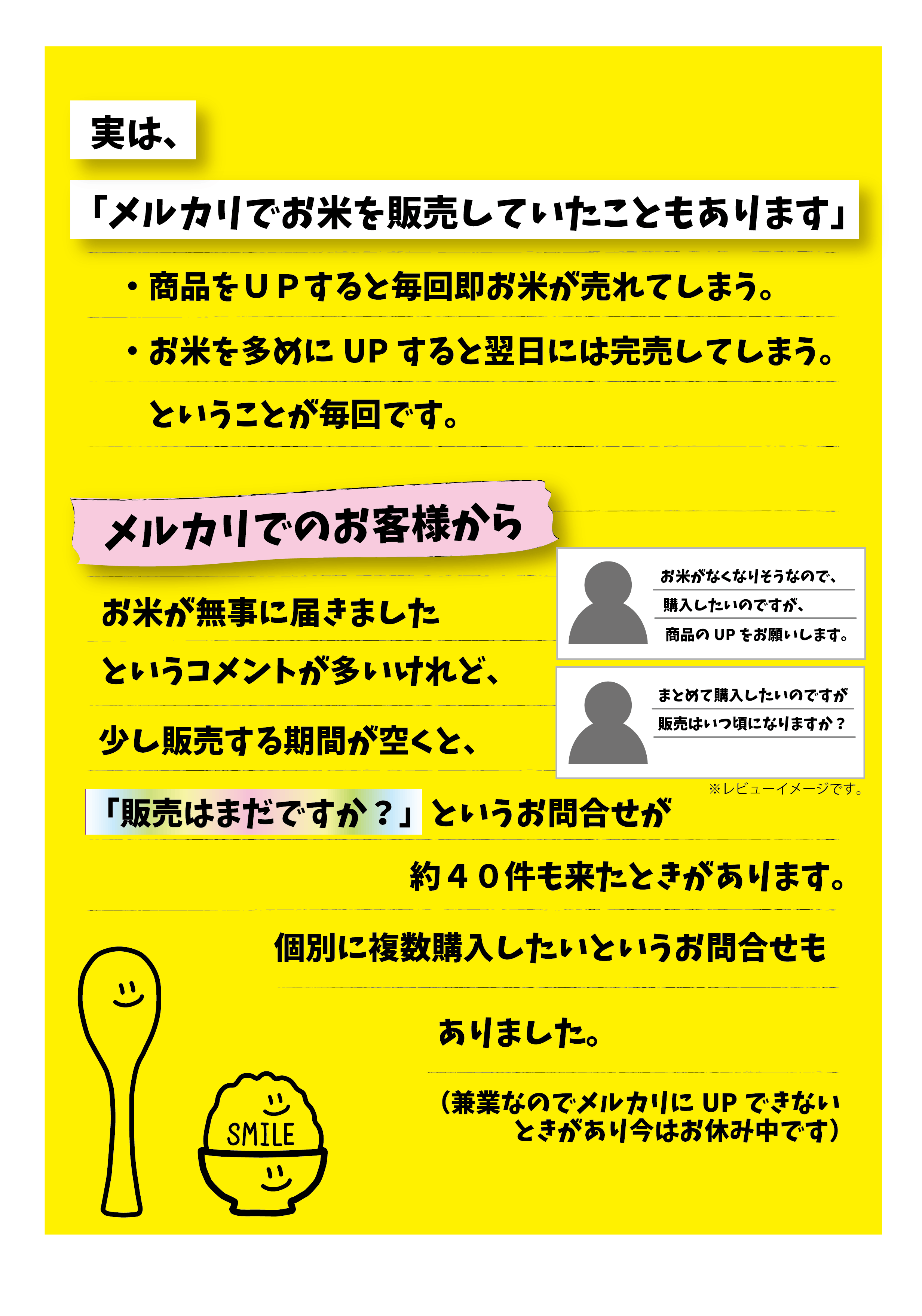 米ごとの味のバラツキは一切なく、美味しいお米をお届けするのがスマイル米です。