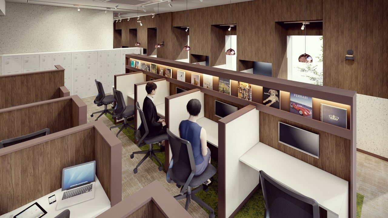 京浜急行線「青物横丁駅」徒歩4分、食事やWEB会議が可能なブースと集中できるブースがしっかりとゾーニングされていて、テレワークにおすすめ。